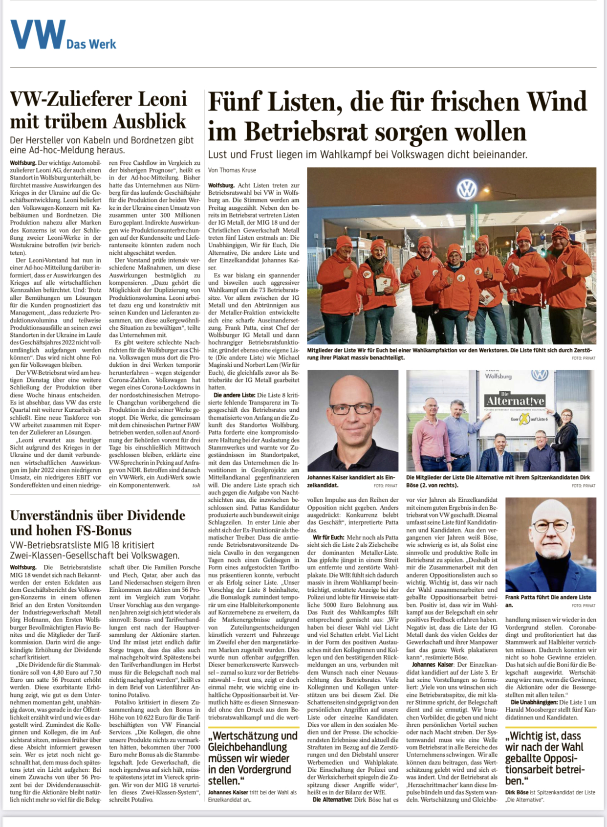 Fünf Listen, die für frischen Wind im Betriebsrat sorgen wollen
